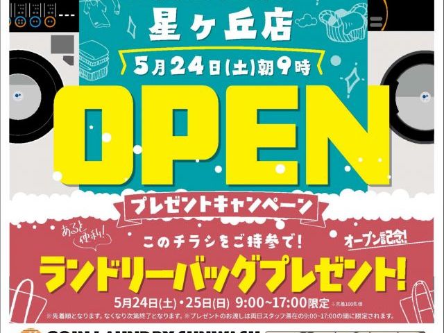 24時間年中無休のコインランドリーが星丘にOPEN!!